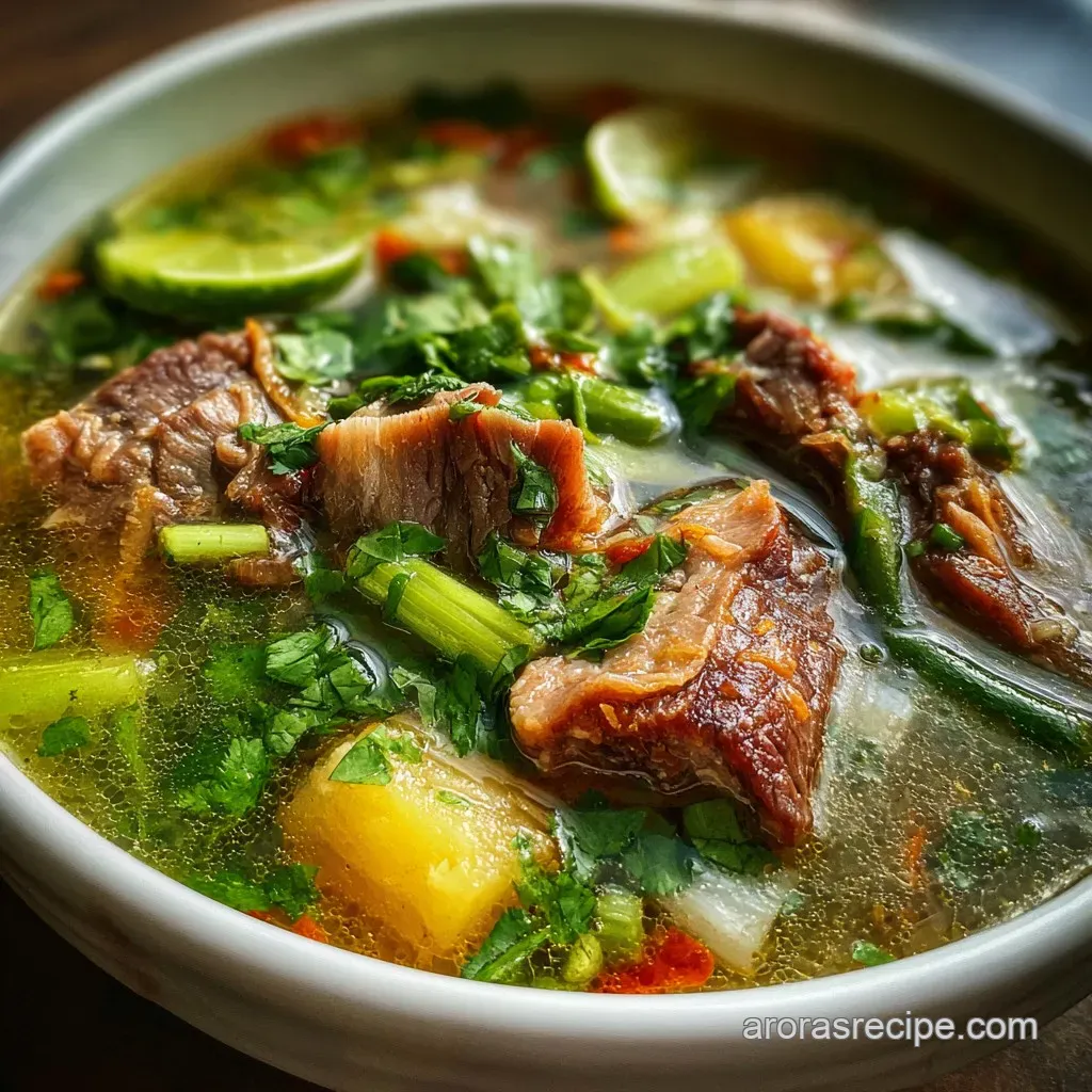 Serve it with all the fixings. Ladle generously into wide bowls, ensuring each serving gets meat and a variety of vegetables, and offer optional garnishes like lime wedges, minced serranos, and thinly sliced radishes for a fresh, bright finish. This pairs wonderfully with a side of Beef Steak Side: Crispy Baked Potatoes with Sherry Glazed Mushrooms.