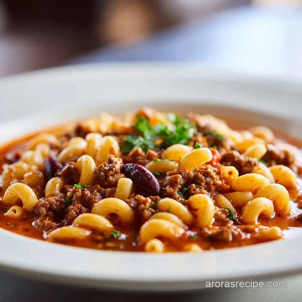 This recipe relies on a specific base of lean ground beef, carrots, celery, onion, and garlic. You will also need tomato sauce, undrained diced tomatoes, beef broth, water, sugar, and a blend of oregano, basil, and thyme, finished with ditalini pasta, kidney beans, and Great Northern beans.
