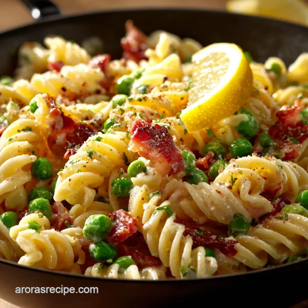 Fusilli Whirlwinds with Lemon Cream Smoked Pancetta and Sweet Peas