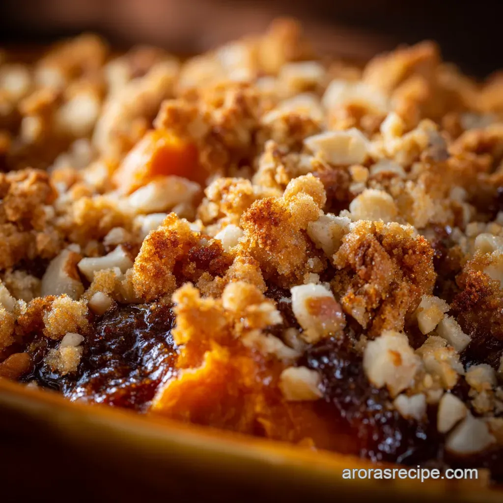 Listen, I love the classic puffy marshmallow topping it has a certain vintage charm. But for the slow cooker, a traditional buttery crumble made with flour, sugar, and pecans works better, offering structural integrity and proper crunch.