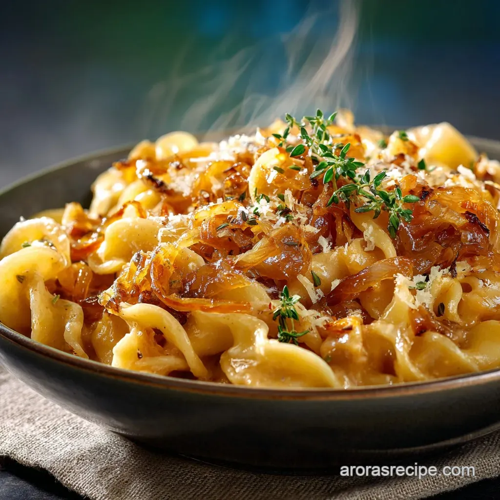 - Mushrooms: Sauté 8 ounces of sliced wild mushrooms (like Cremini or Shitake) separately in butter until golden brown, then stir them into the caramelized onion sauce just before adding the pasta.