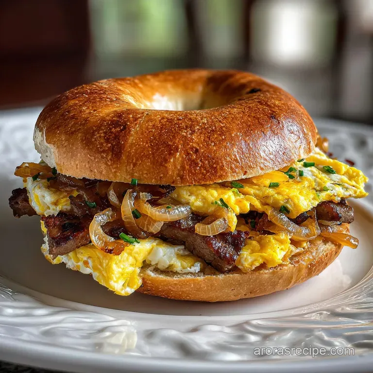 - Flavor/Texture Hook: Buttery toasted bagel meets velvety folded eggs and sizzled savory steak